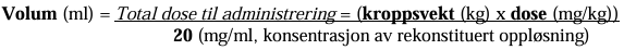 Bestem volumet på den rekonstituerte oppløsningen som trengs basert på en dose på 3,6 mg av trastuzumabemtansin/kg kroppsvekt:
