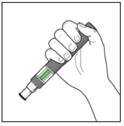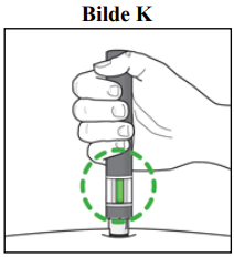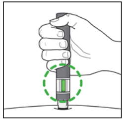 Dersom den grønne indikatoren ikke fyller vinduet, betyr det at du ikke har fått hele dosen. Kontakt lege eller apotek dersom den grønne indikatoren ikke synes.