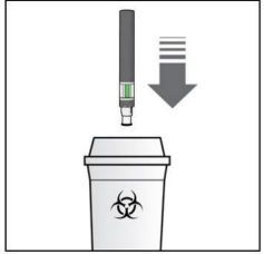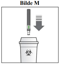 Kast den brukte pennen umiddelbart etter bruk. Bruk ikke en penn flere ganger. Se «Hvordan skal jeg kaste den brukte Kesimpta Sensoready-pennen?» på slutten av denne bruksanvisningen.