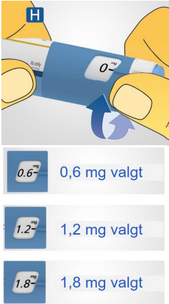 Pennen inneholder 18 mg liraglutid. Du kan velge doser på 0,6 mg, 1,2 mg og 1,8 mg.