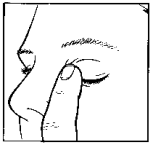 Når du har brukt Maxitrol, lukker du øyet og trykker lett med en finger inn i hjørnet i øyekroken i minst ett minutt. Dette bidrar til å hindre at Maxitrol går ut i resten av kroppen (bilde 4).