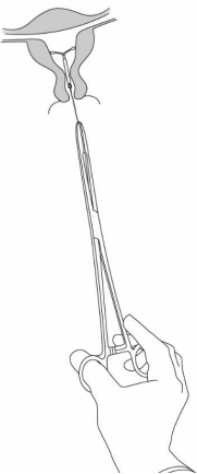 Sett inn et speculum slik at cervix gjøres synlig. Rengjør cervix og vagina grundig med en egnet antiseptisk oppløsning.