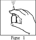 Hold flasken med neseapplikatoren vendt fra deg og press fingrene ned for å trykke på pumpen 10 ganger til sprayen er jevn (Figur 1).