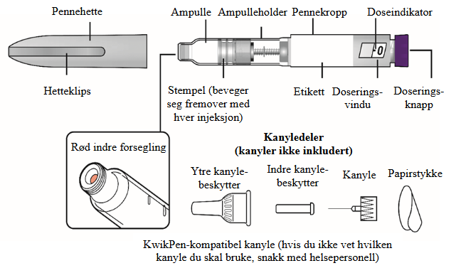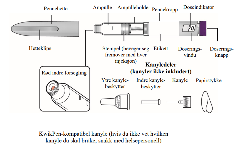 KwikPen-kompatibel kanyle (hvis du ikke vet hvilken kanyle du skal bruke, snakk med helsepersonell)