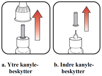 a. Trekk av den ytre kanylebeskyttelsen og behold den. Den skal brukes igjen.