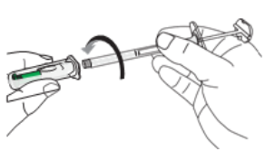 Viktig: Stram sprøyten godt for å unngå lekkasje av legemiddelet.
