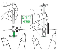 OBS: Les alle instruksjonene nøye før du starter injeksjonen. Injeksjonen gis dypt under huden, og administreringen krever en annen teknikk enn en tradisjonell injeksjon under huden.