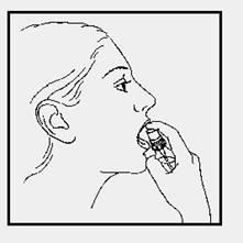 6. Hold pusten mens du tar sprayen med legemiddel.