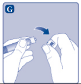 Ikke berør sprøytetuppen under sprøytehetten. Hvis du berører sprøytetuppen, kan bakterier overføres fra fingrene dine.