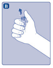 Advarsel: Den ferdigfylte sprøyten er laget av glass, og er utformet til å passe sammen med standard koblinger med luer-lås. Noen nålefrie koblinger som har en innvending spiss passer ikke sammen med den ferdigfylte sprøyten. Denne uforlikeligheten kan hindre administrering av legemidlet og/eller føre til at den nålefrie koblingen skades.