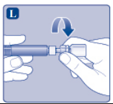 Fest stempelstangen umiddelbart til sprøyten ved at stempelstangen skrus, med urviseren, fast til stempelet inni den ferdigfylte sprøyten, skru til det kjennes motstand.