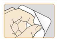 3. Riv av baksiden på blisterpakningen fra hjørnet for å ta nesesprayen ut av beholderen. Plasser nesesprayen innen rekkevidde.