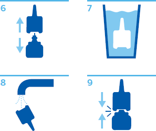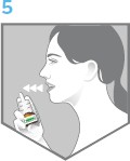 Pust ut gjennom munnen. Gjenta trinn 4 for å spraye enda en dose inn i samme nesebor.