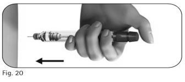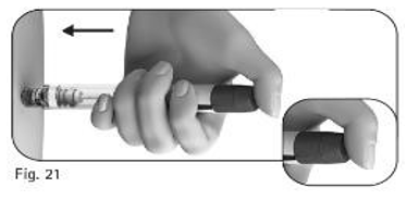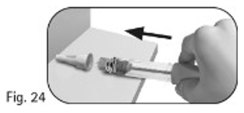6.3. Fortsett å skyve den tildekkede kanylen mot en fast overflate til du hører et klikk («click») (figur 25).