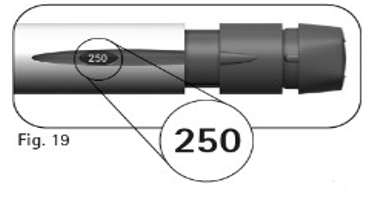 4.2. Kontroller at doseringsvinduet viser «250» (figur 19) før du går videre til trinn 5 nedenfor.