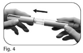 6.2. Ta et godt tak i Ovitrelle ferdigfylt penn med én hånd, og stikk kanylen inn i den ytre kanylehetten (figur 24).