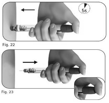 5.3. Hold doseinnstillingsknappen inne i minst 5 sekunder før du trekker kanylen ut av huden (figur 22).