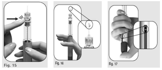 4. Trykk doseinnstillingsknappen ned så langt det går. En liten væskedråpe vil komme ut av kanylespissen (figur 16)*.