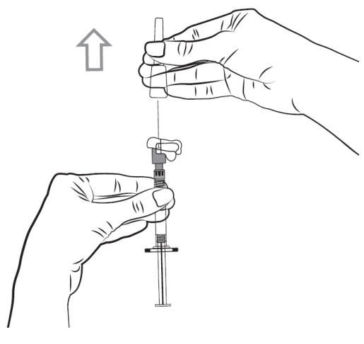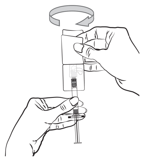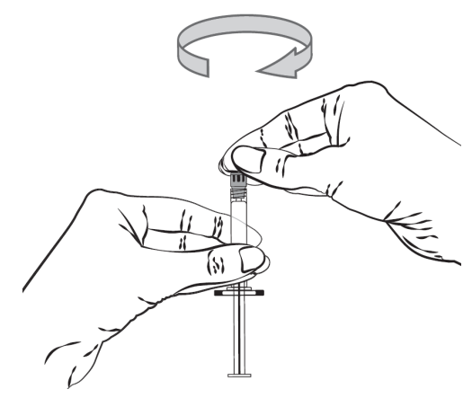 3. Hold sprøyten med spissen opp og fjern gummihetten med en vridende bevegelse.