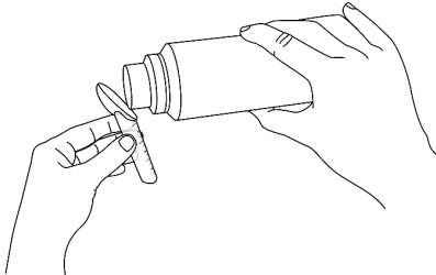 Hell granulatet direkte i skjeen som vist på figuren (på den ytre esken og i dette pakningsvedlegget).