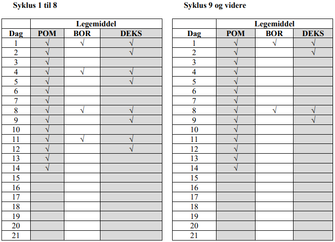 kommer legen til å sørge for graviditetstester før behandling, minst hver 4. uke under behandlingen og minst 4 uker etter at behandlingen er avsluttet.