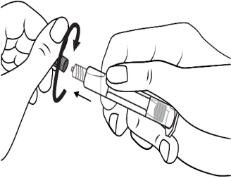 2. Skru stempelet på sprøyten ved å dreie det med urviseren