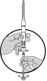 1. For å klargjøre til injeksjon, skru det hvite stemplet inn i endeproppen til proppen begynner å vri seg.
