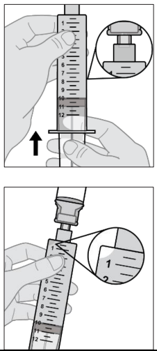 Hele innholdet i hetteglasset skal overføres samtidig til en sprøyte for administrering.