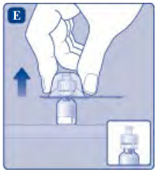 Hvis det på noe tidspunkt er luft i sprøyten, injiser luften tilbake i hetteglasset.