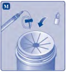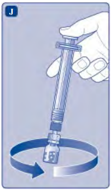 Dersom du trenger mer enn ett hetteglass for at du skal få full dose, gjenta trinn A til J med ytterligere hetteglass, hetteglassadaptere og ferdigfylte sprøyter inntil du har oppnådd din nødvendige dose.