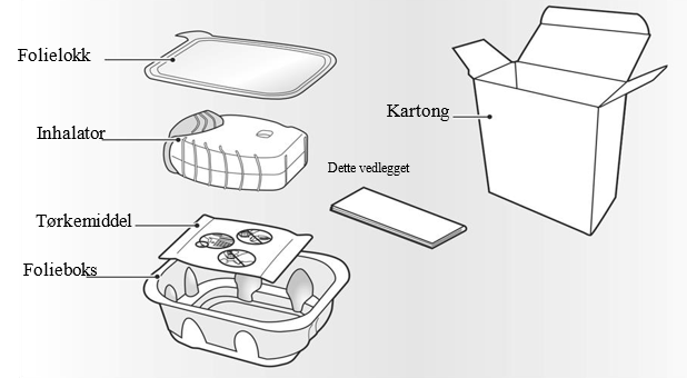 Inhalatoren er pakket i en folieboks. Ikke åpne folieboksen før du er klar til å inhalere en dose av legemidlet ditt. Dra opp folielokket for å åpne folieboksen når du er klar til å bruke inhalatoren.