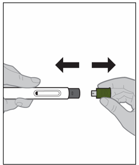 Ikke fjern beskyttelseshetten før du er klar til å injisere. Når du fjerner hetten, ikke sett hetten på pennen igjen.