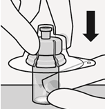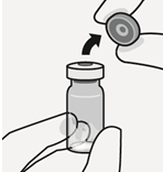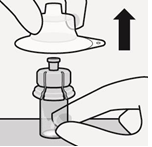Hold hetteglasset vertikalt for å forhindre lekkasje. Hold rundt den nederste delen av hetteglasset, og trekk den sterile blisteren opp for å fjerne den. Ikke rist.