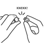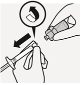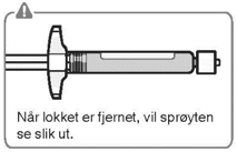 Brekk av det hvite lokket mens du holder i den hvite kragen. Ikke vri eller klipp av det hvite lokket. Ikke ta på sprøytespissen. Det vil føre til kontaminering.