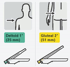 Velg riktig nål Velg nål basert på injeksjonsstedet (gluteal eller deltoid). |