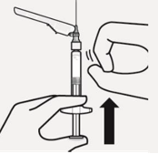 Fjern luftbobler Hold sprøyten rett opp, og knips forsiktig for å få eventuelle luftbobler til å stige til toppen. Trykk stempelstangen langsomt og forsiktig oppover for å fjerne luft. |