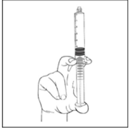 2) Trykk på stempelet for å frigjøre proppen. Steriliseringsprosessen kan ha ført til at proppen har festet seg til selve sprøyten.