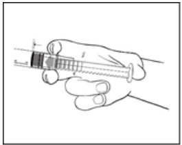 6) Koble sprøyten til tilgangsenheten ved bruk av et luer-/luerlock-system. Skyv stempelet langsomt inn for å injisere ønsket volum. Administrer legemidlet via egnet administrasjonsvei.