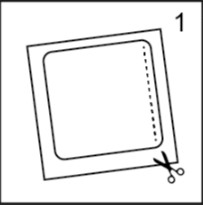 Klipp langs den stiplede linjen, ta ut det hudfargede plasteret inkludert den gjennomsiktige kvadratiske beskyttelsesfolien (Fig. 1).