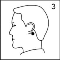 Fest plasteret godt (med den sølvfargede siden ned) på et tørt hudområde bak øret (Fig. 3). Pass på at plasteret sitter godt fast. Når det har kommet på plass må det ikke flyttes på.