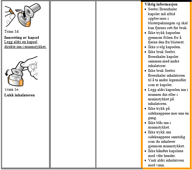 Når du starter på en ny pakning, bruk Seebri Breezhaler inhalatoren som følger med i pakningen.