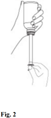 Det følger også med en doseringssprøyte og en plastplugg som både passer på flasken og doseringssprøyten (Press-In Bottle Adapter). Doseringssprøyten har et volum på 8 ml, og graderingen er i trinn på 0,1 ml opp til den maksimale daglige dosen på 7 ml.