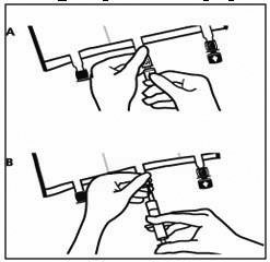 Press spissen inn gjennom infusjonsporten. Hele spissen må føres inn for å sikre at infusjonssettet er riktig tilkoblet (Bilde B).
