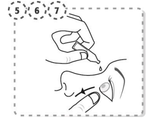 7. Klem forsiktig på endosebeholderen slik at to dråper kommer inn i øyet, og slipp så nedre øyelokk.