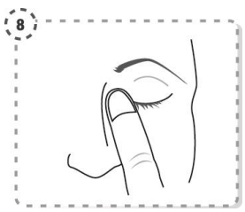 8. Trykk en finger mot den øyekroken av det behandlede øyet som er ved nesen. Hold i 1 minutt mens du holder øyet lukket.