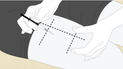 13. Trykk injeksjonsvæsken inn i muskelen til sprøyten er tom. Dette tar ca. 10 sekunder.