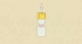 2. Trykk plasthetten hardt ned slik at oppløsningsvæsken renner ned i nedre kammer av hetteglasset sammen med separasjonskorken.