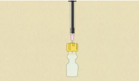 3. Rist hetteglasset til innholdet er oppløst. Oppløsningen vil først være litt grumsete, men klarner deretter. Dersom oppløsningen er uklar eller inneholder partikler etter blanding, skal legemidlet kastes.