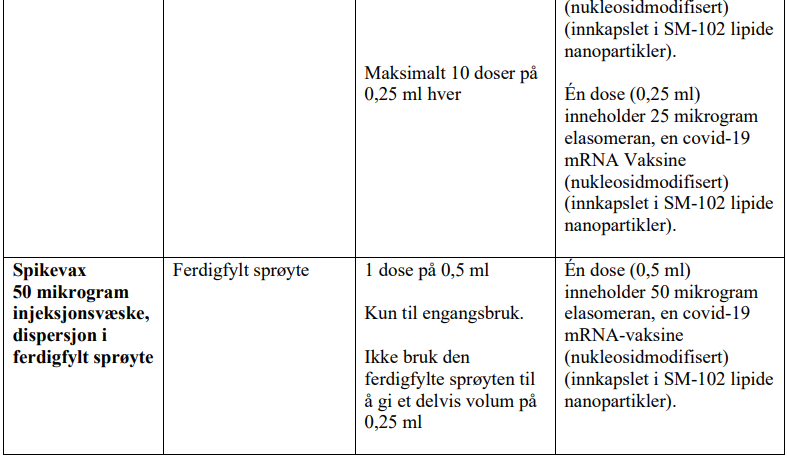 Spikevax 50 mikrogram injeksjonsvæske, dispersjon i ferdigfylt sprøyte