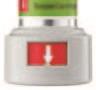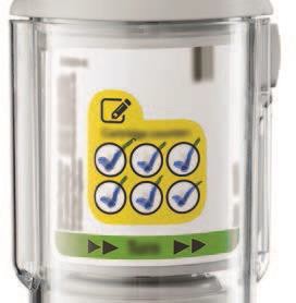 Viser doseindikatoren på patronen en hvit pil på rød bakgrunn? Patronen er brukt opp. Sett inn en ny patron og sett endestykket på plass.